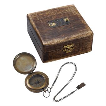 מצפן עץ שולחני-הודי. קוטר 6.5 ס'מ גובה 4 ס'מ.