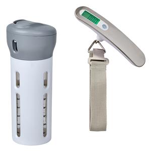 'טרוול מאסטר' - ערכה משולבת בבקבוק מאסטר ומשקל מזוודה דיגיטלי. ערכה קומפקטית לאחסון, מושלמת לנסיעות/קמפינג. מפרט בקבוק מאסטר: בקבוק מתאים לכל נוזלים/ קרמים, עיצוב חכם מונע דליפות, קל לריסוס, עמיד, באיכות גבוהה מידות: בקבוק מאסטר: 16.5x6.7 ס'מ, קיבולת בקבוק אחד: 40 מ'ל. מפרט משקל: תצוגה גדולה במיוחד, גוף ארגונומי ונוח לאחיזה משקל עד 50 ק'ג, יחידת דיוק משקל: 100 גרם תצוגת סוגי משקל: lb/oz/kg/g. ספק כוח: סוללת ליתיום אחת CR-2023 כלולה כיבוי אוטומטי לשמירה על אורך חיי הסוללה כולל התראה לפני פריקת סוללה מידות: אורך 15 ס'מ