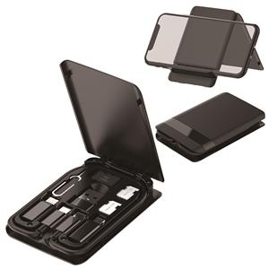 טריו - כבל USB עם תופסן מתכת וקופסה, 3 מתאמים, iPhone, Micro, Type-C