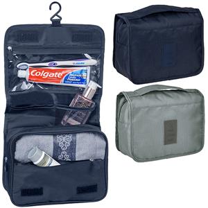 'TRAVEL' - תיק כלי רחצה מתקפל עם תלייה, קומפקטי ונוח, בעמידות גבוהה למים. חלוקה: תא מרכזי רוכסן מבד, תא רוכסן מבד ותא רוכסן שקוף. שני תאים נוספים מבד רשת. מידות: 24x19.5x9.5 ס'מ, 3 ליטר.