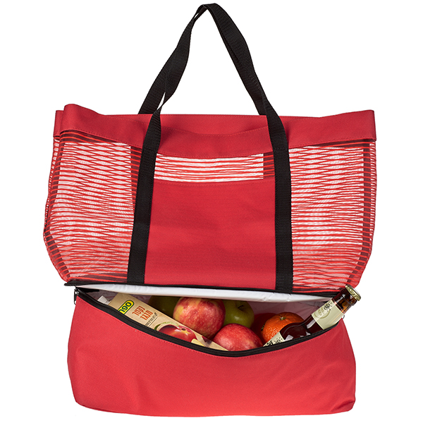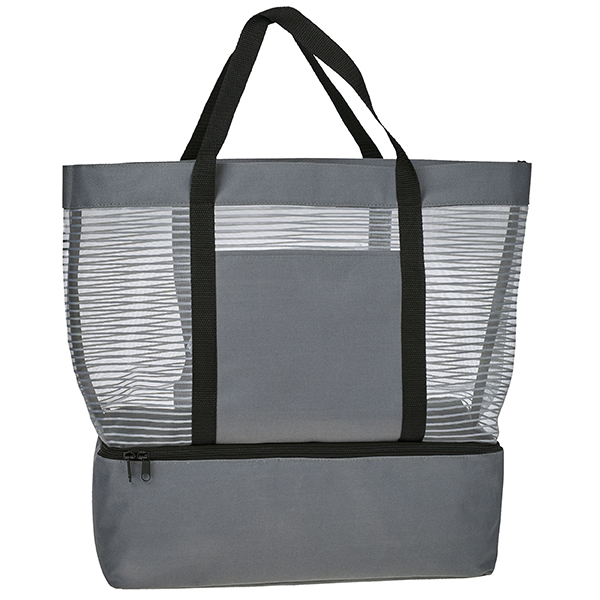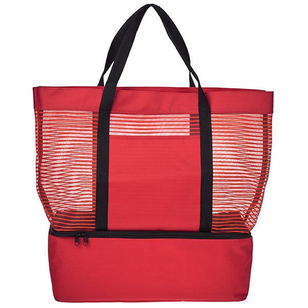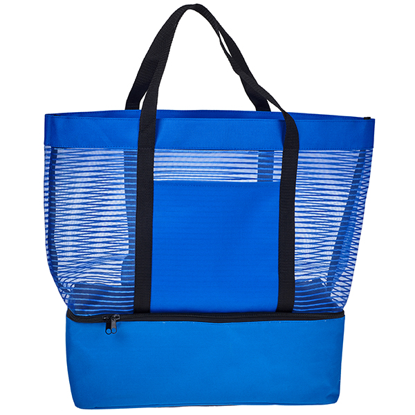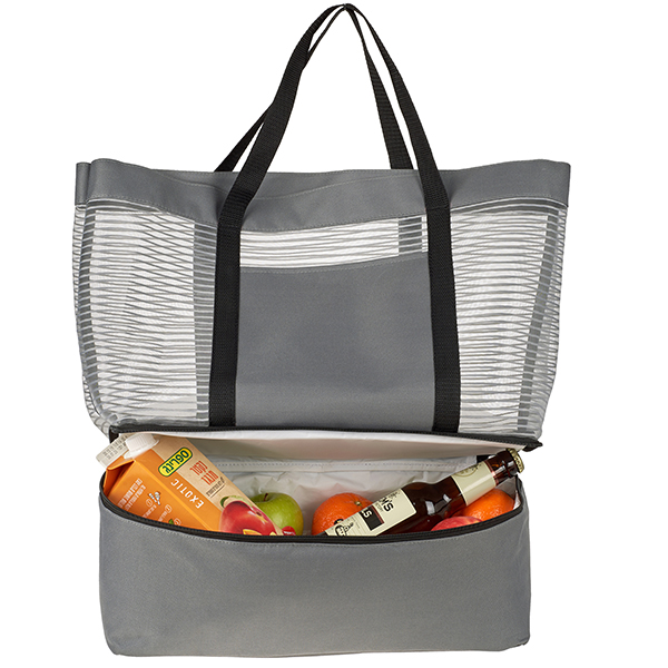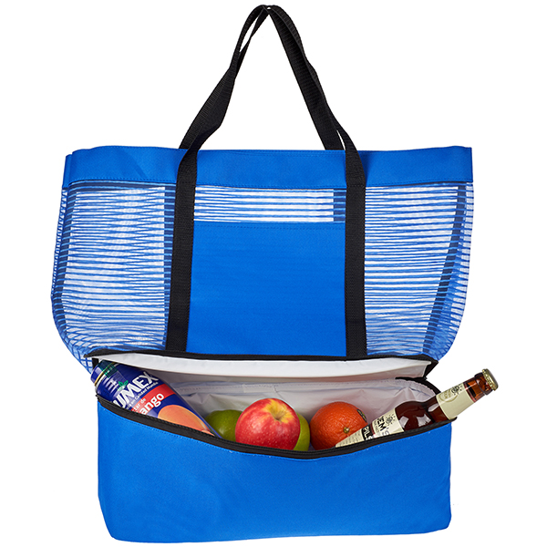 תיק חוף שקוף פסים כולל צידנית בתחתית. מידות: 40x40 ס'מ. מידות צידנית: 40x15x15 ס'מ. נפח: 9 ליטר.